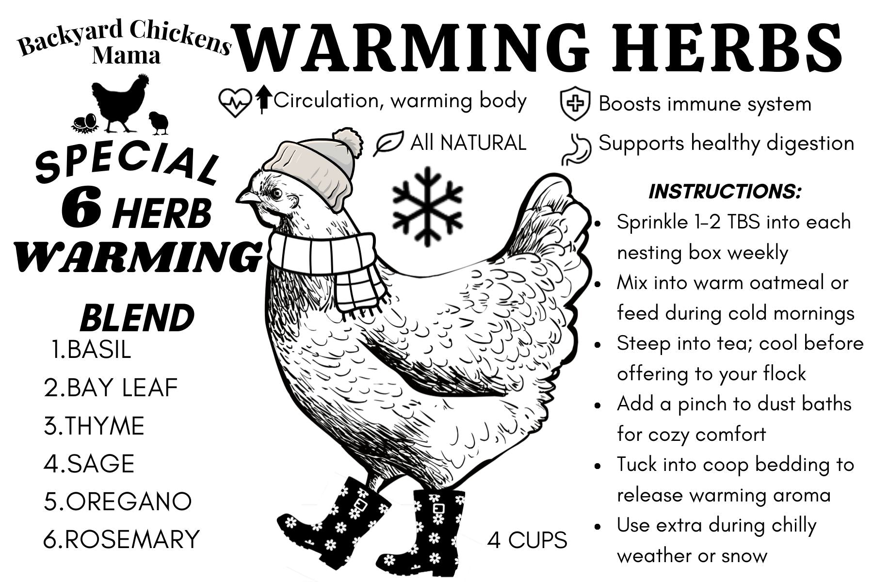 Warming herbs gently stimulate circulation and digestion—both of which generate heat from within. Combined with their medicinal benefits, these herbs are the perfect cold-weather companion for your flock.